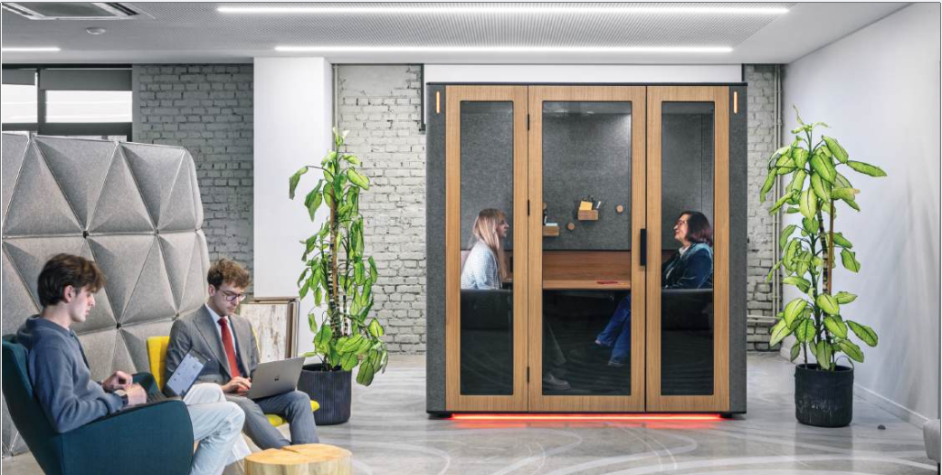 «Для обеспечения эффективной и комфортной работы в офисе важна не только отличная шумоизоляция переговорных комнат, но и умные технологии управления их занятостью. Интеграция индикаторов и систем бронирования существенно снижает стресс и повышает продуктивность команды.» – эксперт по офисным решениям.